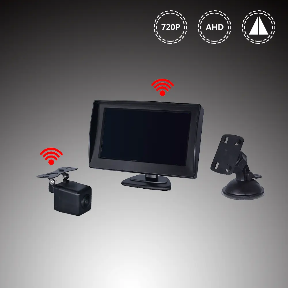 4.3" 2.4G digital signal wireless system support 1 channel video input, strong and reliable. After matched the wireless module, it is controlled by the wireless module,used for car / truck monitoring. The monitor can be installed in the car. The camera is installed outside of the car. The operation temperature is -30℃~+85℃. The screen can automatically switch when reversing, which can help drivers drive safely because they can see every angle of the image. It can work well day and night and has some special functions such as guideline,mirror or normal image etc.